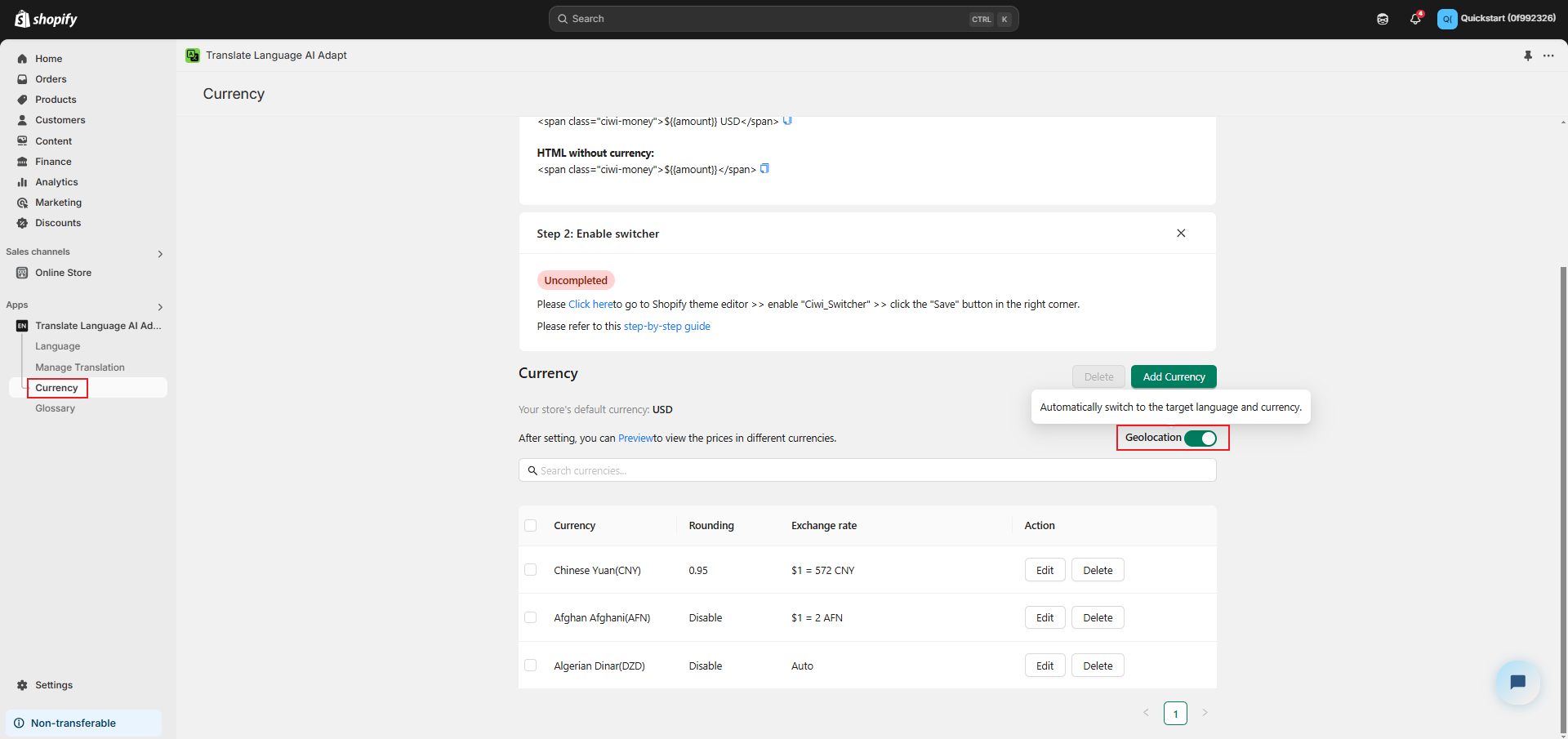 Once these steps are completed, your website will automatically switch to the corresponding language and currency based on the visitor’s location.