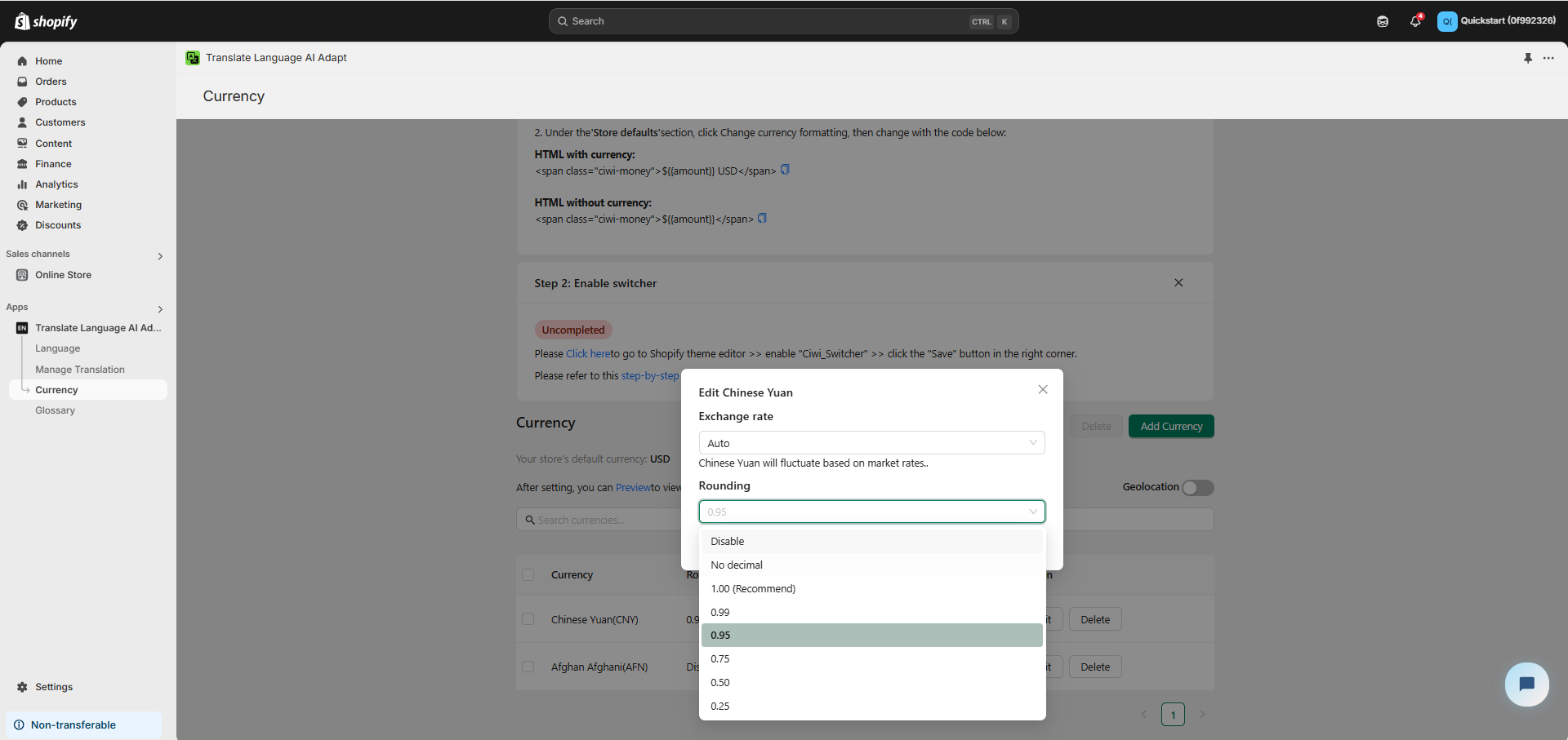 You can click "Edit" to customize the exchange rates and set price rounding.