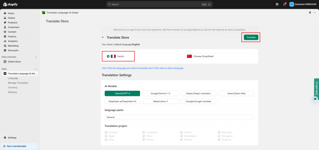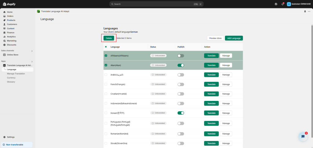 Please note that due to Shopify's limitations, a maximum of 20 languages can be added.When the language exceeds the limit, you will receive a warning prompt.