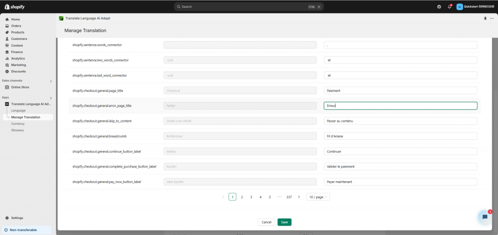 On the Manage Translation page, click on different tabs to select the language you want to edit.Click the "Edit” button to enter the Edit details page.